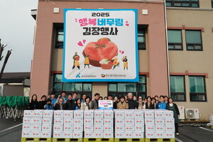 [에너지신문] 한국광해광업공단(사장 황영식)은 겨울 추위를 앞두고 원주 지역사회 취약계층의 따뜻한 겨울나기를 지원하기 위해 인근 복지기관과 함께 ‘행복 버무림 김장나눔행사’를 가졌다고 26일 밝혔다.이날 행사에서 공단과 복지기관 임직원들은 정성껏 준비한 김장 김치(2000만원 상당 약 2천 포기)를 포장해 장애인, 노인, 아동 등의 지역 복지기관 8곳에 직접 전달했다.황영식 사장은 “지역 복지기관과 함께 준비한 김장 김치가 추운 겨울을 나야 하는 이웃 주민들에게 따뜻한 온기가 되기를 바란다”며 “앞으로도 지역사회에 대한 지속적인 관