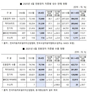[에너지신문] 전기차가 6월 수출액(수소차 포함)이 7억 8000만달러를 기록, 2024년 1월 이후 16개월만에 증가세로 전환, 길고 길었던 캐즘 터널에서 벗어나고 있다는 분위기다.특히 친환경차 수출량은 7만 6000대를 기록, 3개월 연속 월간 최대 수출량을 경신했고, 수출액도 전년 동월대비 18.6% 증가한 22억달러를 달성하는 등 오랜만에 호재를 맞았다.산업통상자원부가 17일 발표한 6월 자동차산업 동향에 따르면, 친환경차 수출대수는 7만 5706대로 전년동월대비 23.1% 증가했고, 수출금액도 22억달러를 기록, 지난해 같