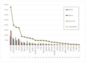 [에너지신문] 특허청 공공기관 브랜드평판 2025년 11월 빅데이터 분석결과, 1위 한국특허정보원 2위 한국발명진흥회 3위 한국특허기술진흥원 순으로 분석됐다.한국기업평판연구소는 특허청 공공기관 6개 브랜드에 대해 2025년 10월 24일부터 2025년 11월 24일까지의 특허청 공공기관 브랜드 빅데이터 3,075,743개를 분석한 결과 지난 10월 특허청 공공기관 브랜드 빅데이터 3,231,913개와 비교하면 4.83% 줄어들었다고 밝혔다.2025년 11월 특허청 공공기관 브랜드평판 순위는 한국특허정보원, 한국발명진흥회, 한국특허기