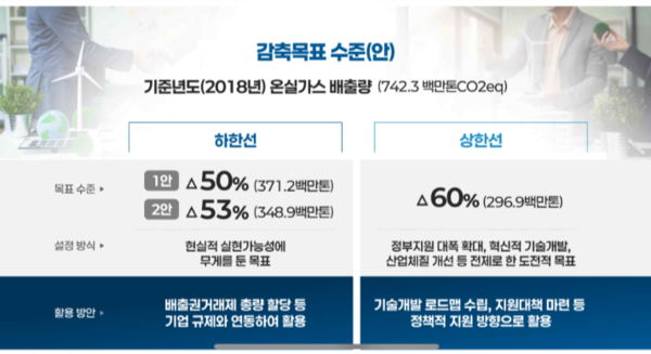 당초 정부는 48%, 53%, 61%, 65% 등 4가지 감축안을 제시해 대국민 논의를 진행해 왔었다.
