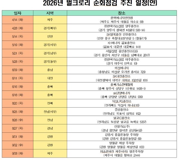 올해 벌크로리 순회점검은 지난 5월16일 인천을 시작으로 9월24일 강릉까지 12개 지역을 순회하며 벌크로리 차량 271대, 차량 불량 112대(불량율 40.78%)에 대해 수리하는 등의 성과를 만들어냈다.