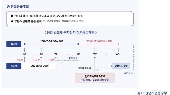 왜냐하면 용인 반도체 국가산단에는 총 10GW에 이르는 전력수요를 화석연료 발전 위주로 충당할 계획이기 때문이다.